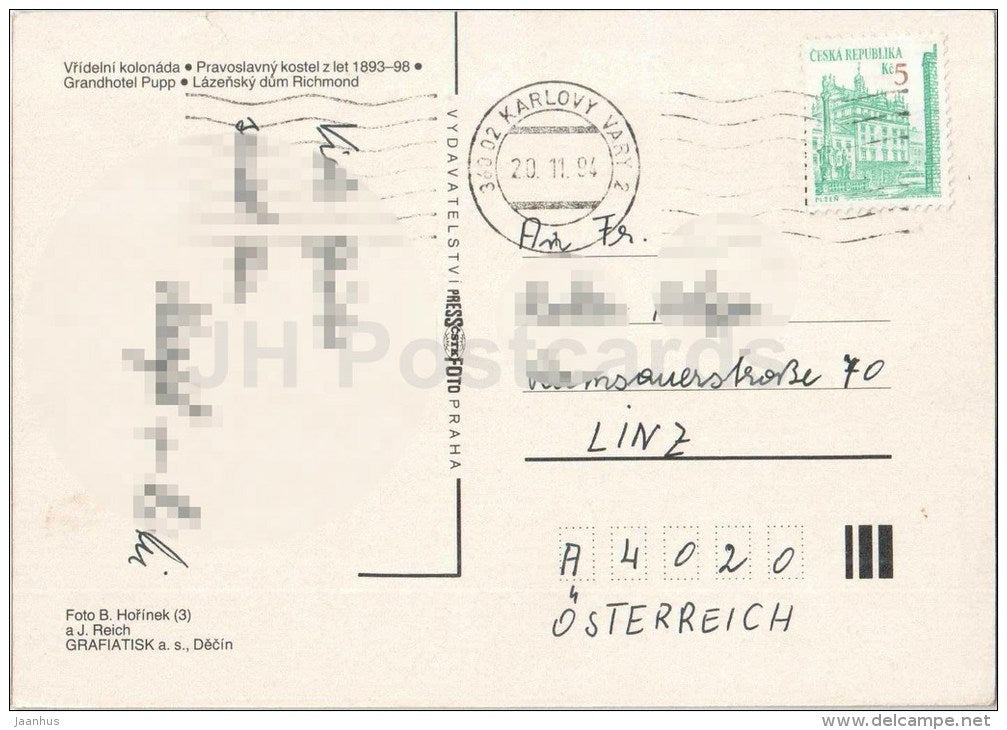 Karlovy Vary - Karlsbad - spa - Spring colonnade - Orthodox Church - grandhotel Puppo Czechoslovakia - Czech - used 1994