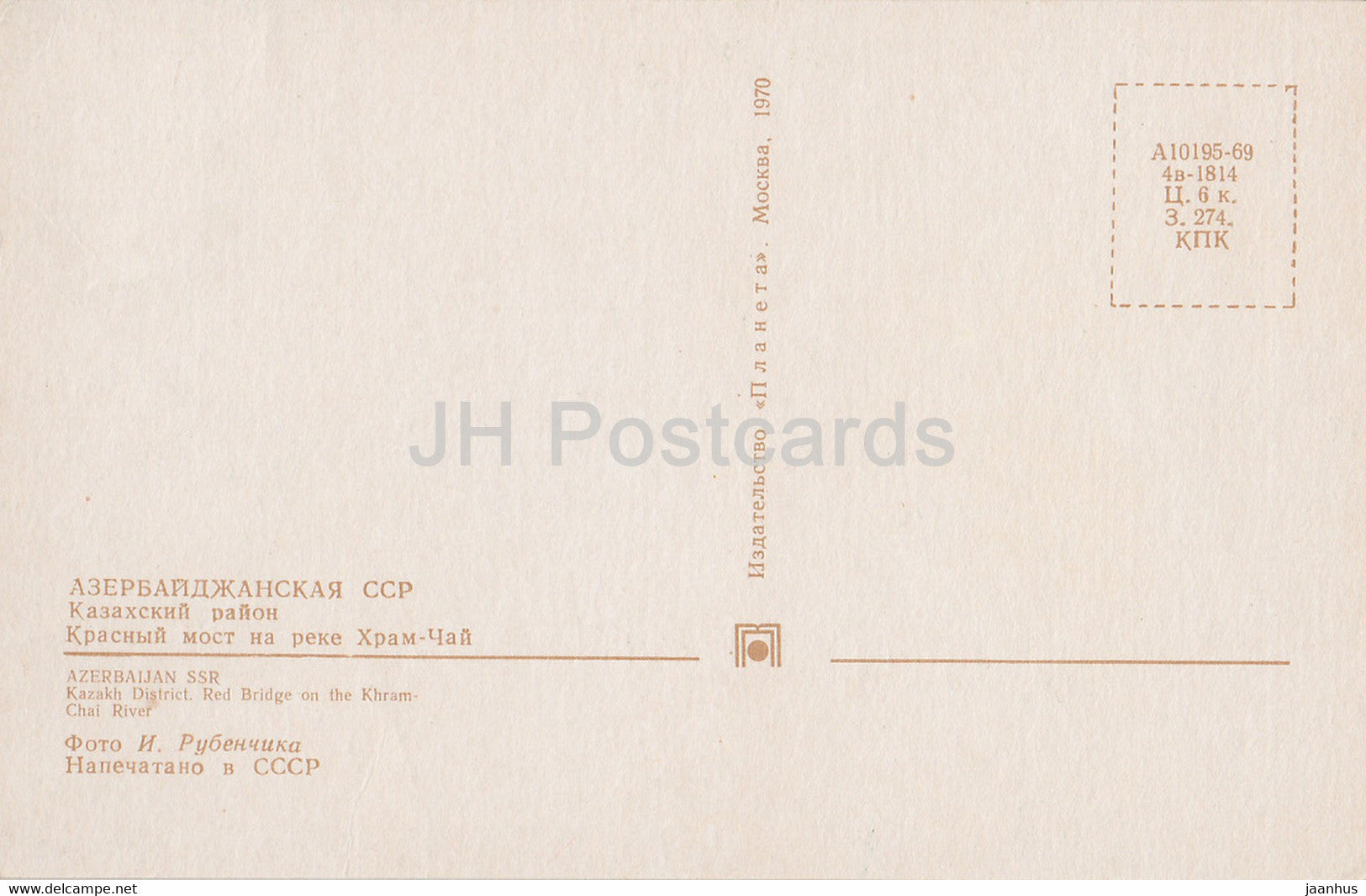 Kazakh District - Red Bridge on the Khram Chai river - 1970 - Azerbaijan USSR - unused