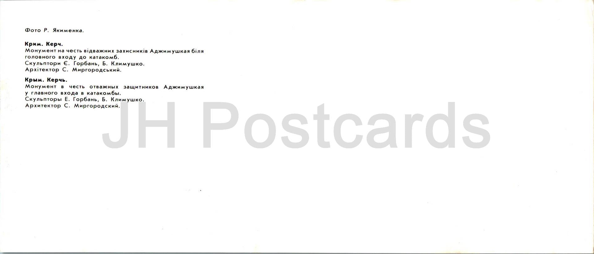 Kerch - monument in honor of the brave defenders of Adzhimushkay - Crimea - 1985 - Ukraine USSR - unused