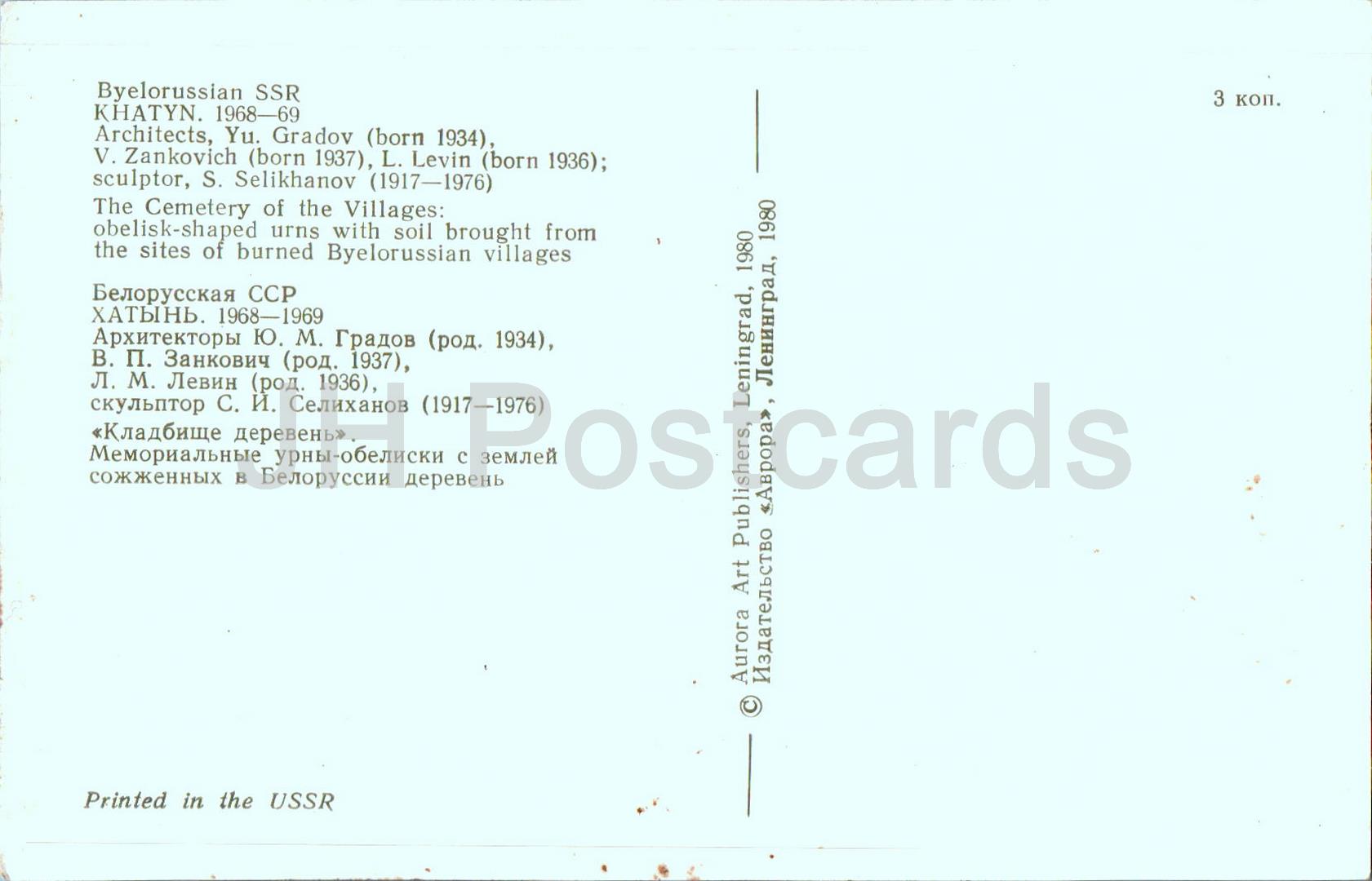 Khatyn Memorial Complex - The Cemetery of Villages - Obelisk shaped urns -1980 - Belarus USSR - unused