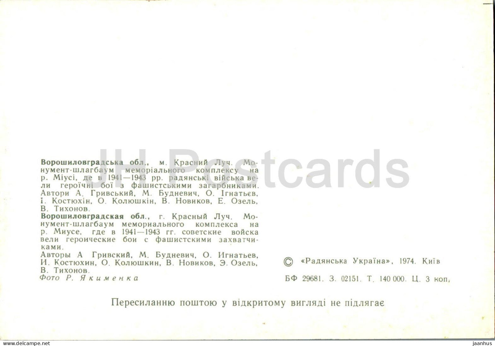 Khrustalnyi - Krasnyi Luch - monument of Memorial complex - 1974 - Ukraine USSR - unused