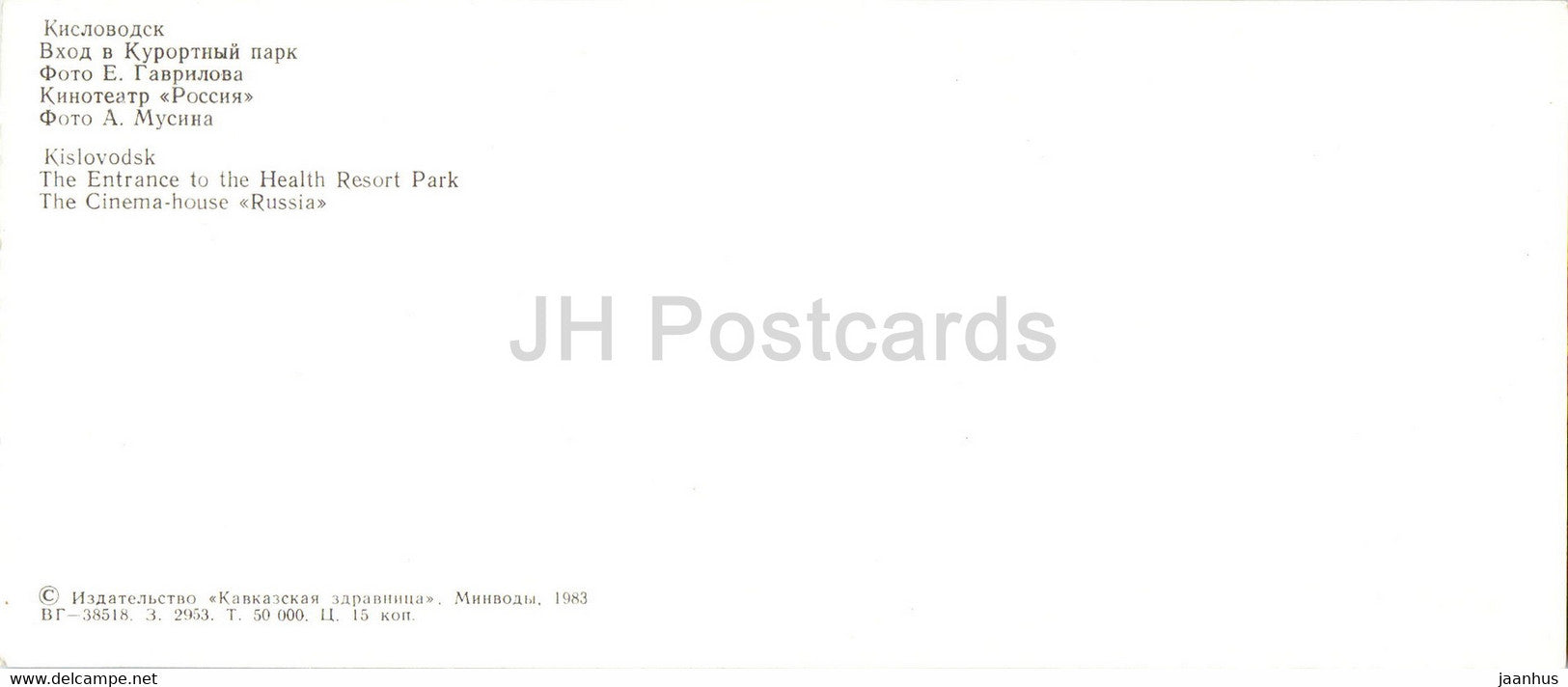 Kislovodsk - The Entrance to the Health Resort Park - The Cinema house Rossiya - 1983 - Russia USSR - unused