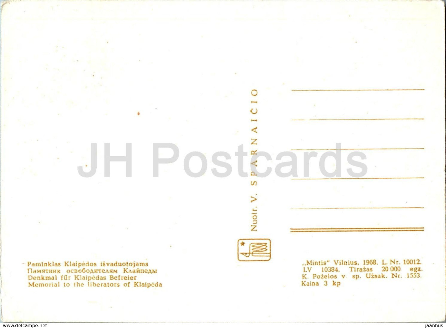 Klaipeda - memorial to the liberators of Klaipeda - monument - 1968 - Lithuania USSR - unused