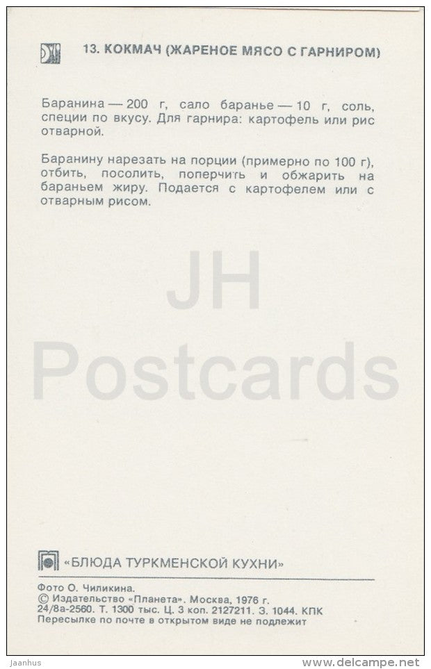 Kokmach - Grilled Meat - Turkmenistan Dishes - Cuisine - 1976 - Russia USSR - unused