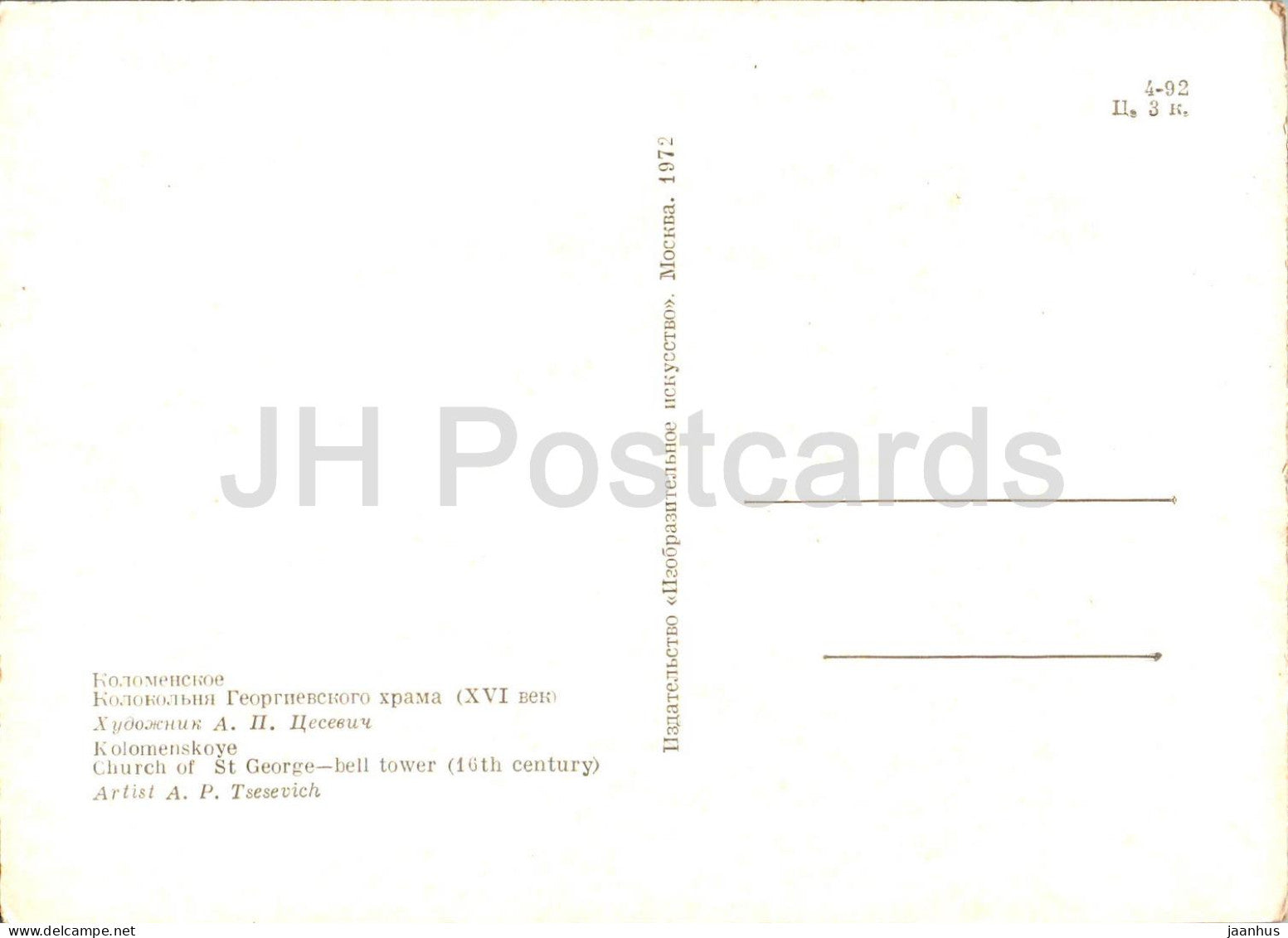 Kolomenskoye - Church of St George Bell Tower - illustration by A. Tsesevich - 1972 - Russia USSR - unused