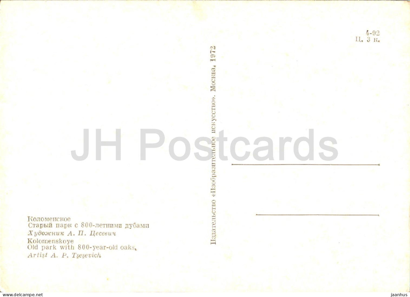 Kolomenskoye - Old Park with 800 Year old Oaks - illustration by A. Tsesevich - 1972 - Russia USSR - unused