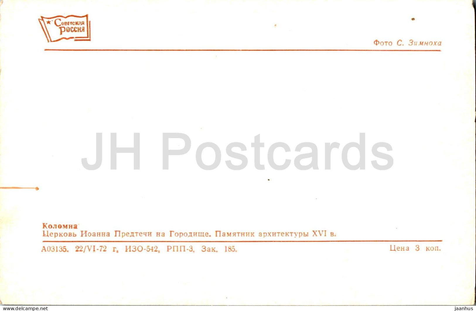 Kolomna - Church of John the Baptist on Gorodishche - 1972 - Russia USSR - unused
