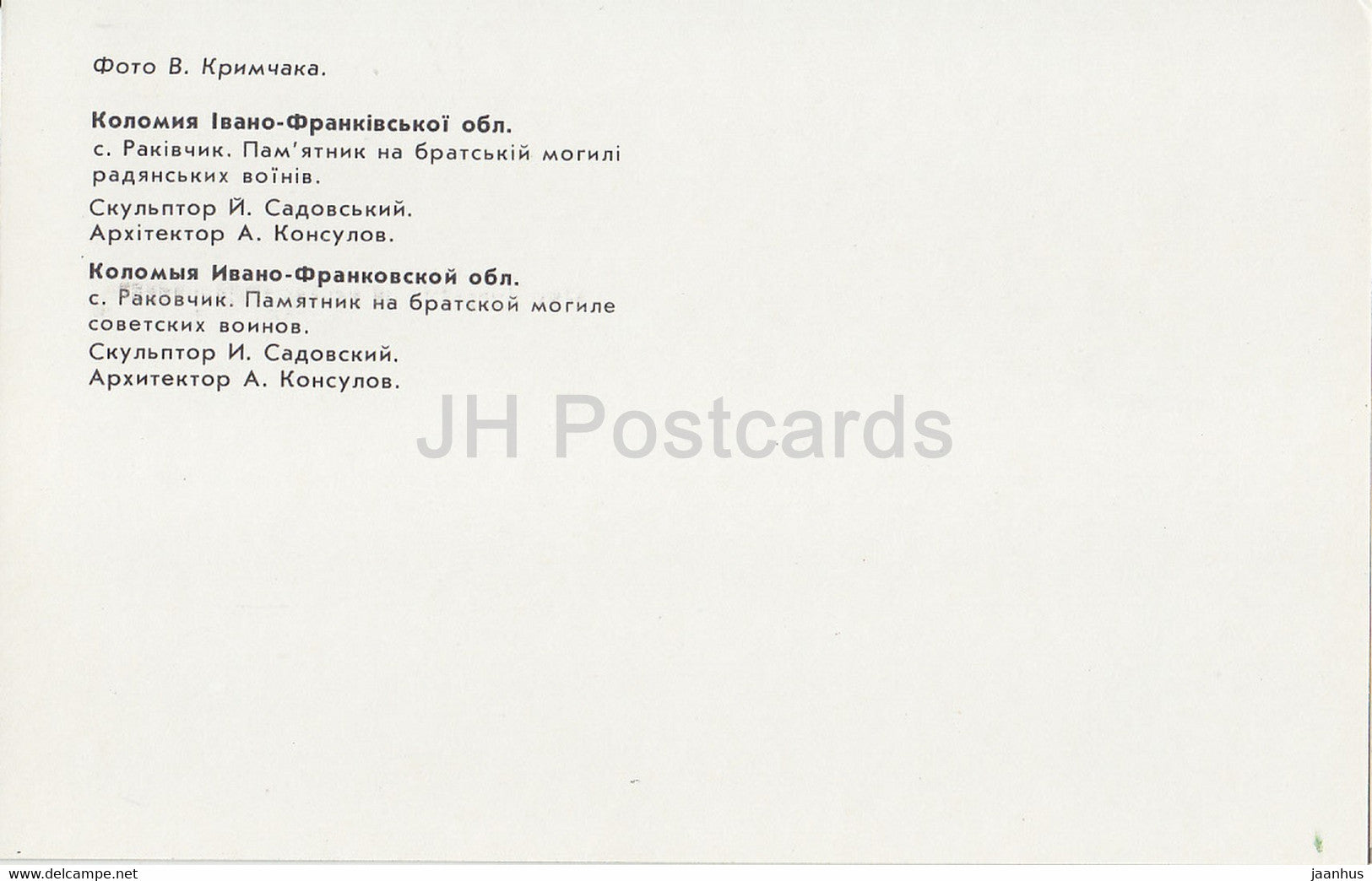 Kolomyia - Kolomyya - monument at the mass grave of Soviet soldiers - 1987 - Ukraine USSR - unused