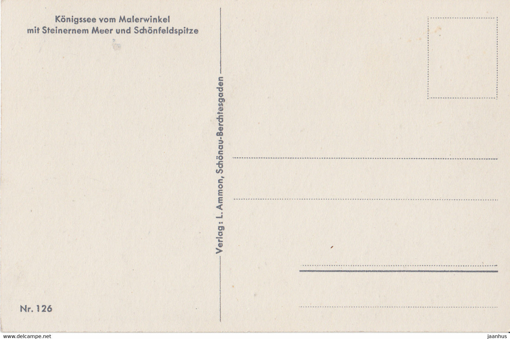 Konigssee vom Malerwinkel mit Steirnernem Meer und Schonfeldspitze - old postcard - 126 - Germany - unused