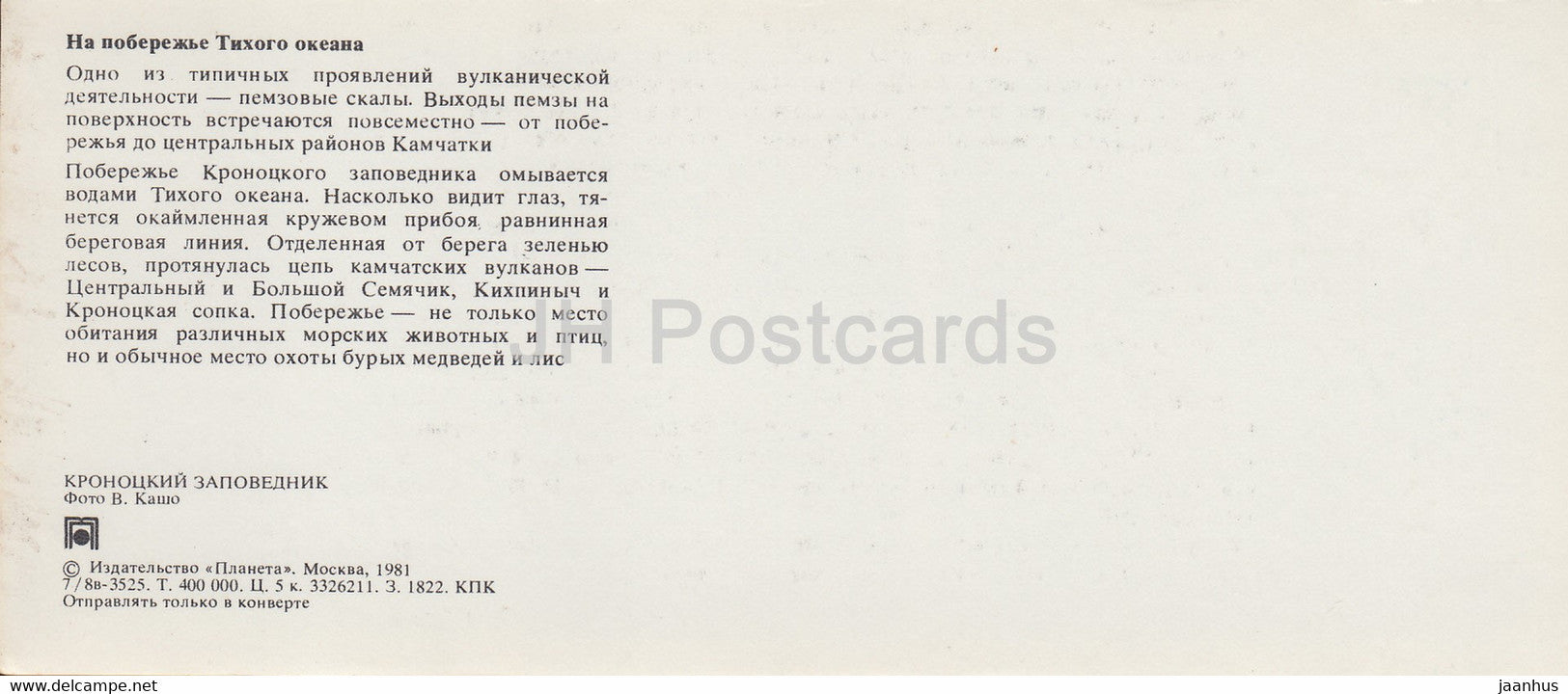 Kronotsky Nature Reserve - On the Pacific coast - 1981 - Russia USSR - unused