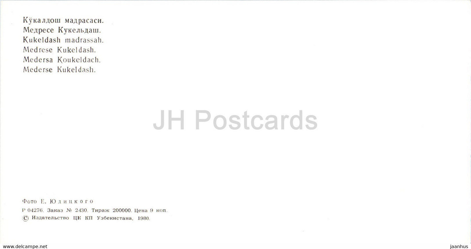 Kukeldash madrassah - 1 - Tashkent - Toshkent - 1980 - Uzbekistan USSR - unused