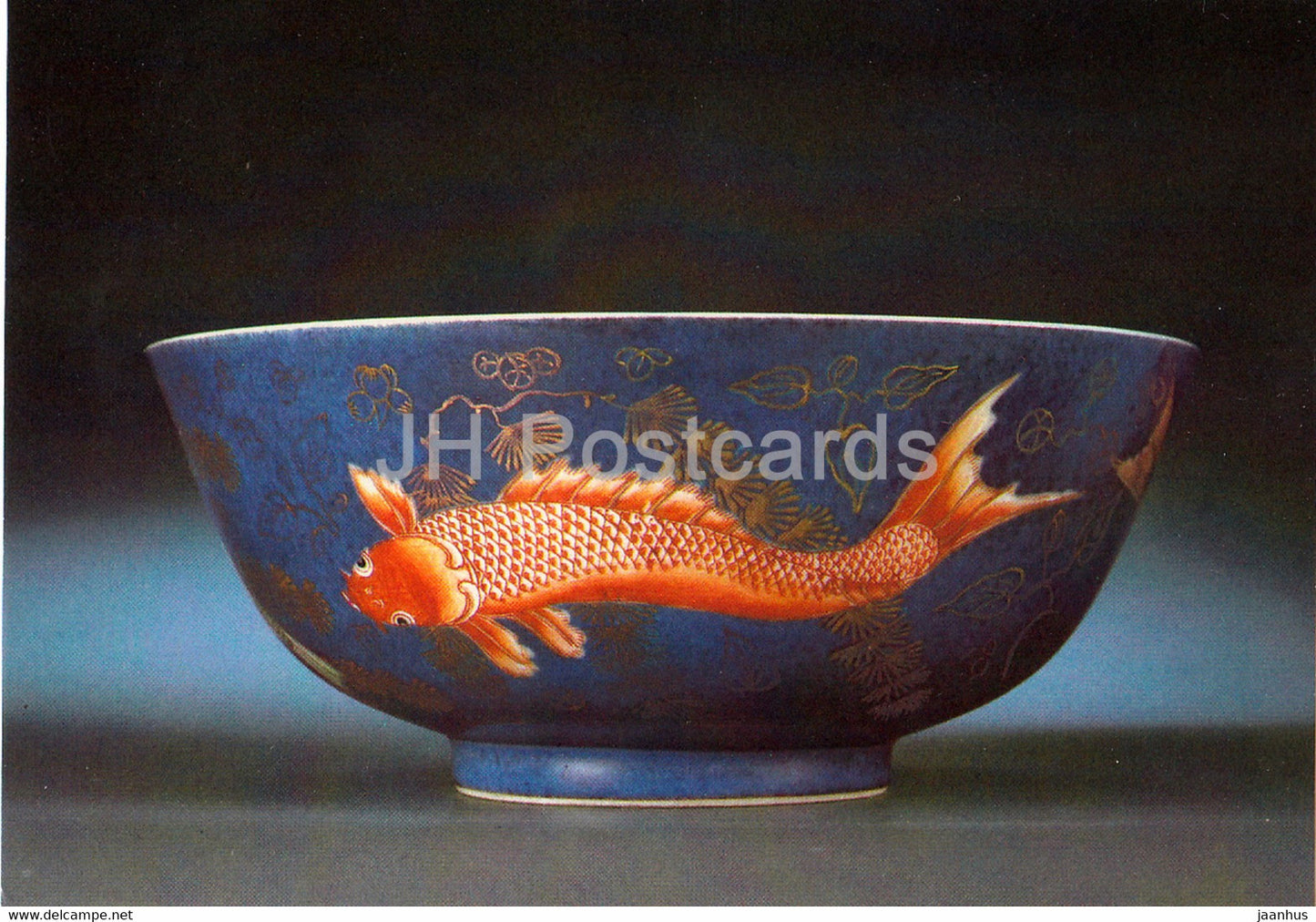 Kumme mit unterglasurblauem Fond - fish - porcelain - Porzelansammlung - Zwinger - DDR Germany - unused