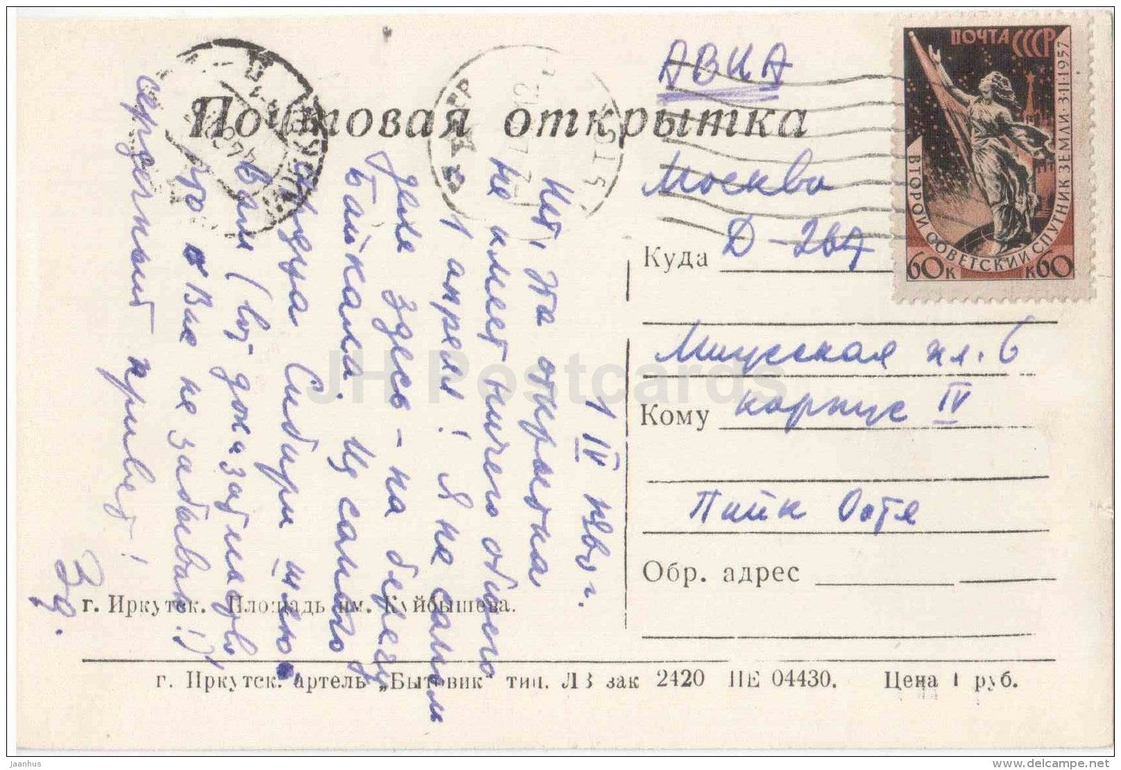 Kuybyshev square - bus - Irkutsk - 1957 - Russia USSR - used