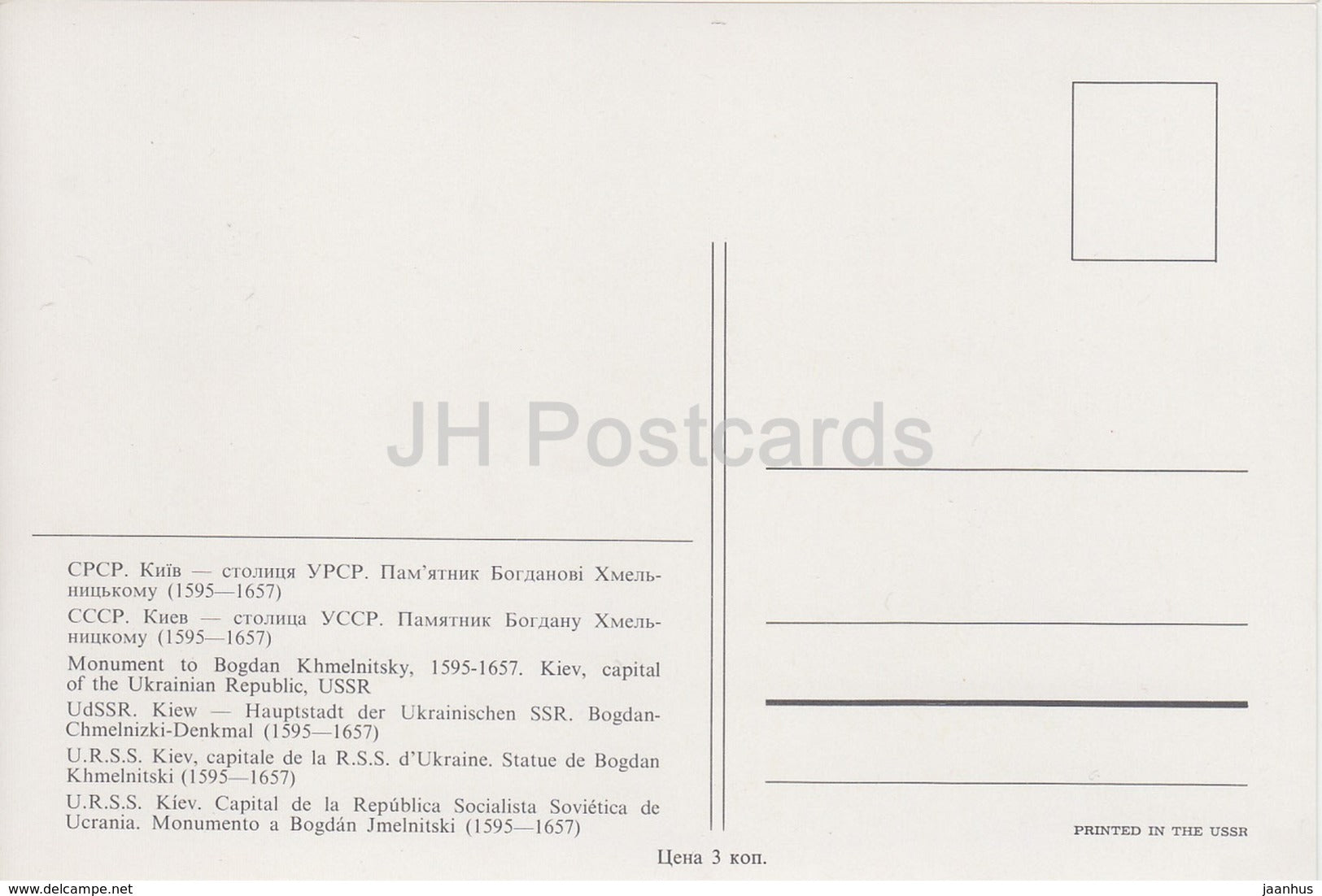 Kyiv - Kiev - monument to Bogdan Khmelnitsky - Ukraine USSR - unused