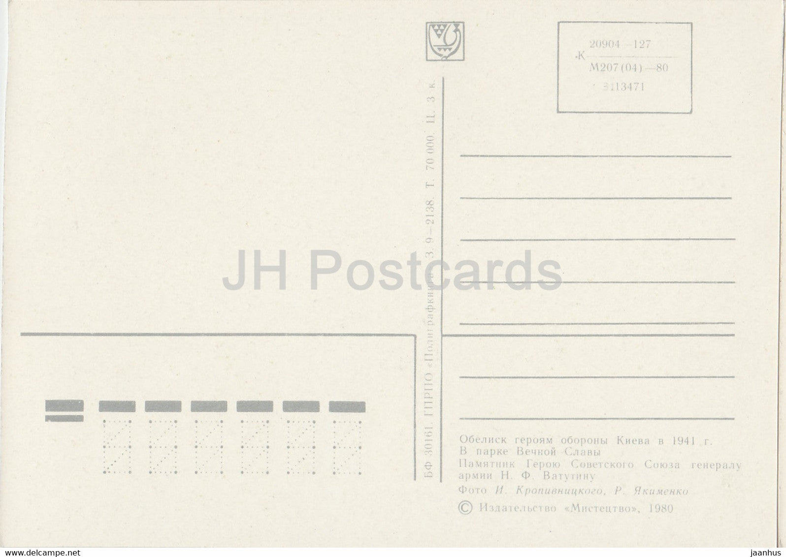 Kyiv - Kiev - obelisk to the heroes of the defense of Kyiv - monument to general Vatutin - 1980 - Ukraine USSR - unused