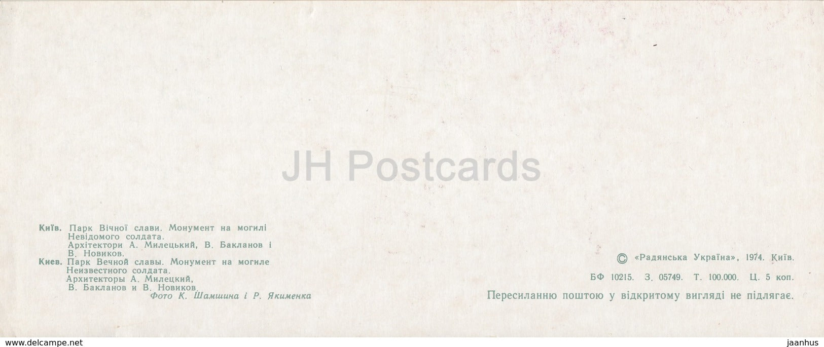 Kyiv - Kiev - Park of Eternal Glory - Tomb of Unknown Soldier - 1974 - Ukraine USSR - unused