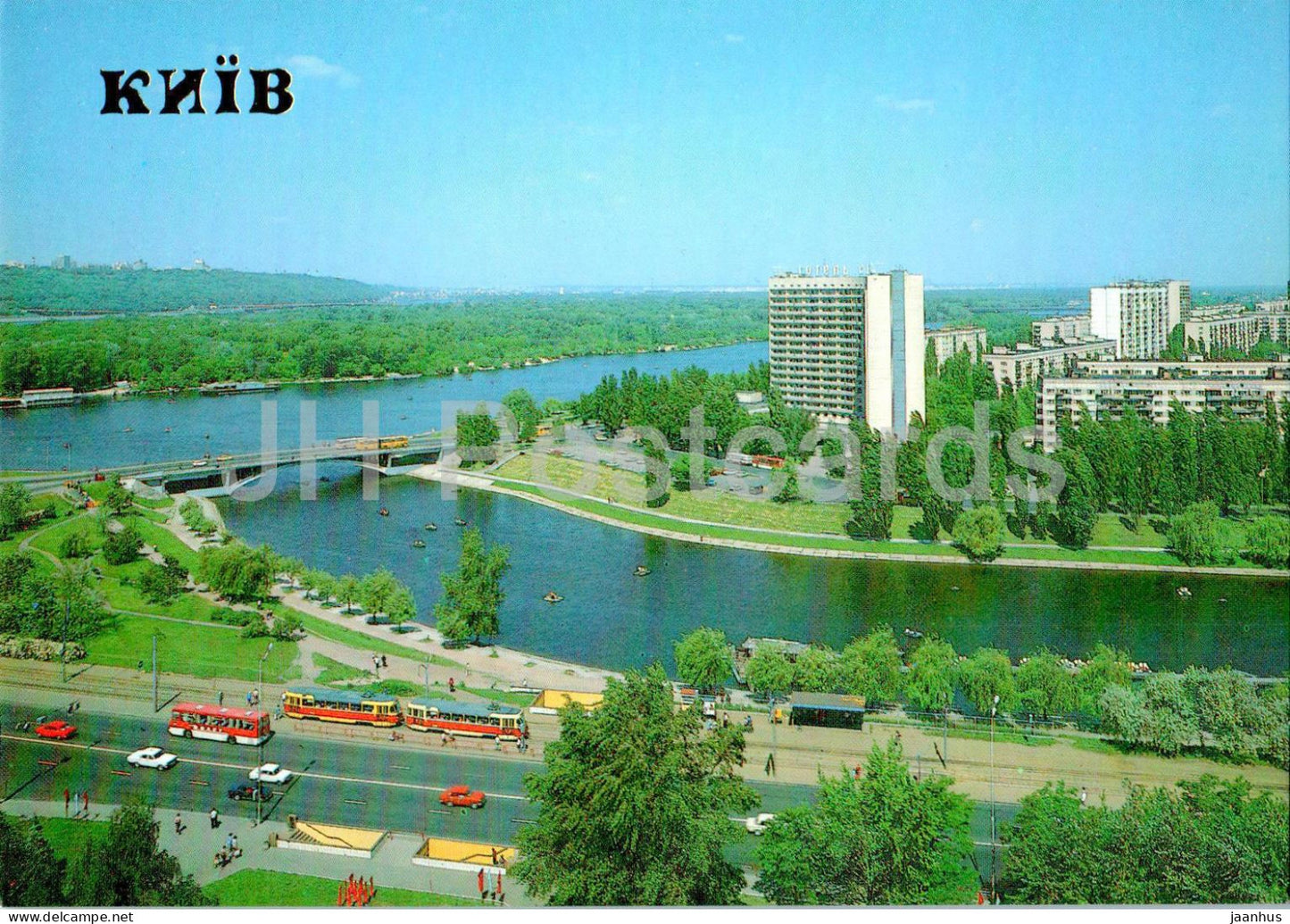 Kyiv - Kiev - Rusanovka residential area - bus Ikarus - tram - 1990 - Ukraine USSR - unused