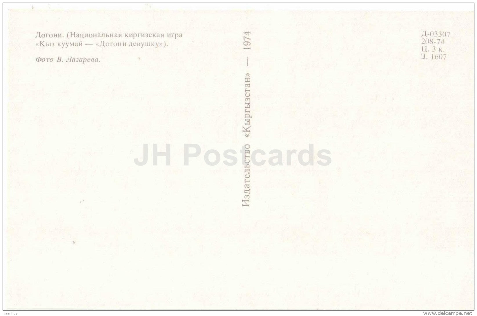 kyrgyzs national game Kyz Kuumai (Catch the girl) - horse - 1974 - Kyrgyzstan USSR - unused