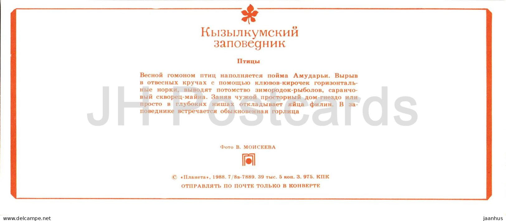 Kyzylkum Nature Reserve - Birds - Common kingfisher - Eurasian eagle-owl - dove - 1988 - USSR Uzbekistan - unused