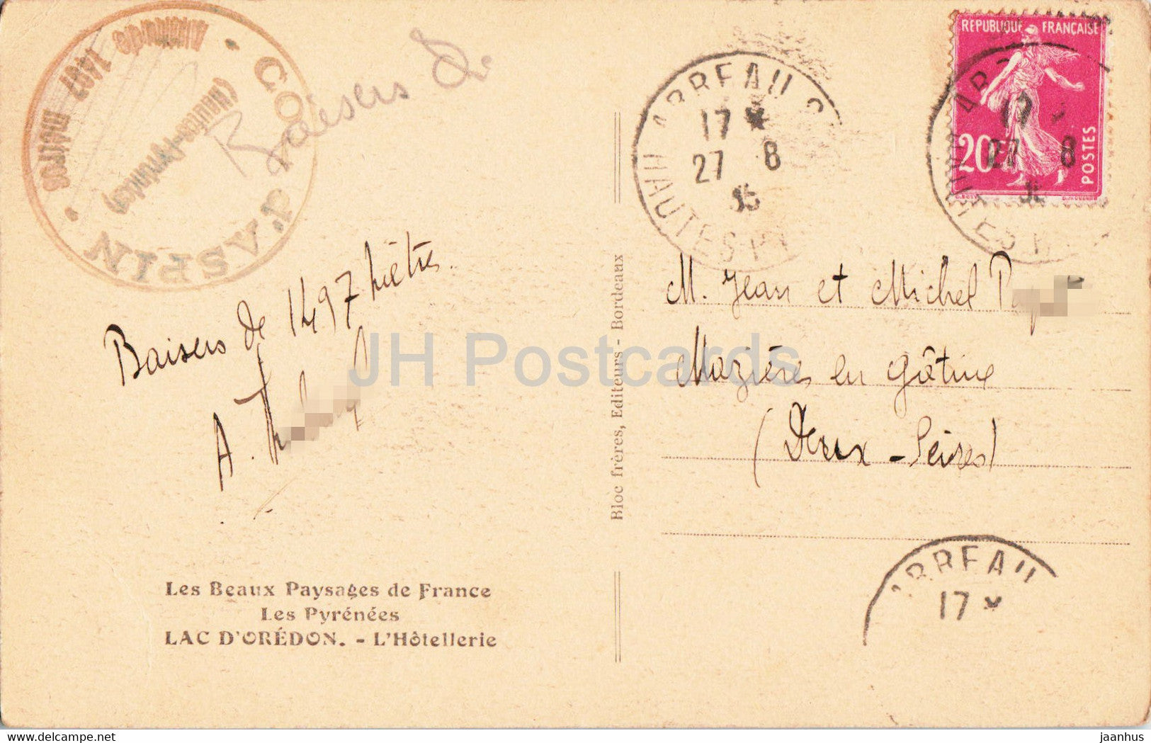 Lac d'Oredon - L'Hotellerie - Les Pyrenees - old postcard - 1935 - France - used