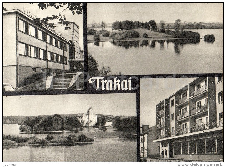 Lake Galve , the insular castle , a new shop - Trakai - old postcard - Lithuania USSR - unused