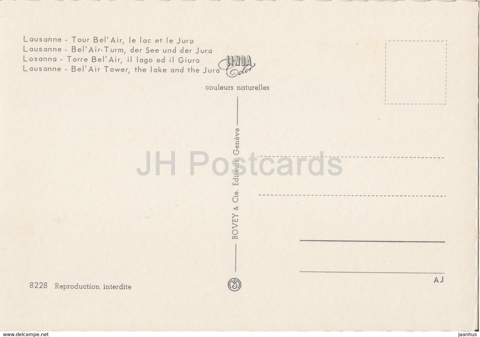 Lausanne - Tour Bel Air - Le lac et le Jura - 8228 - Switzerland - unused