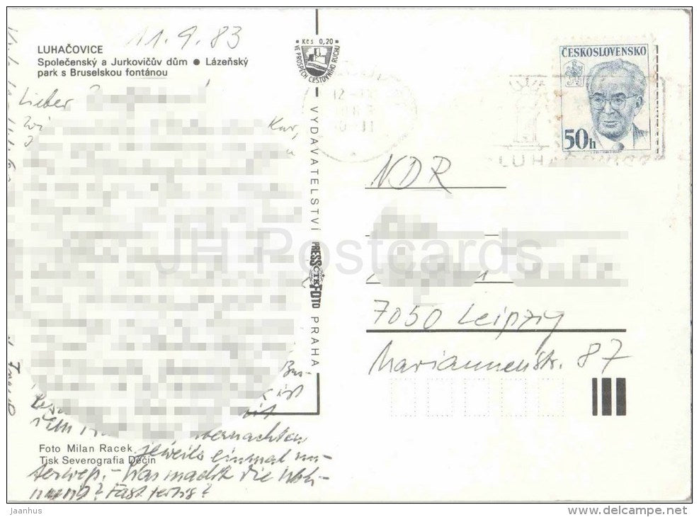 Lazne Luhacovice - Jurkovic house - Park with Brussels fountain - Czechoslovakia - Czech - used in 1983