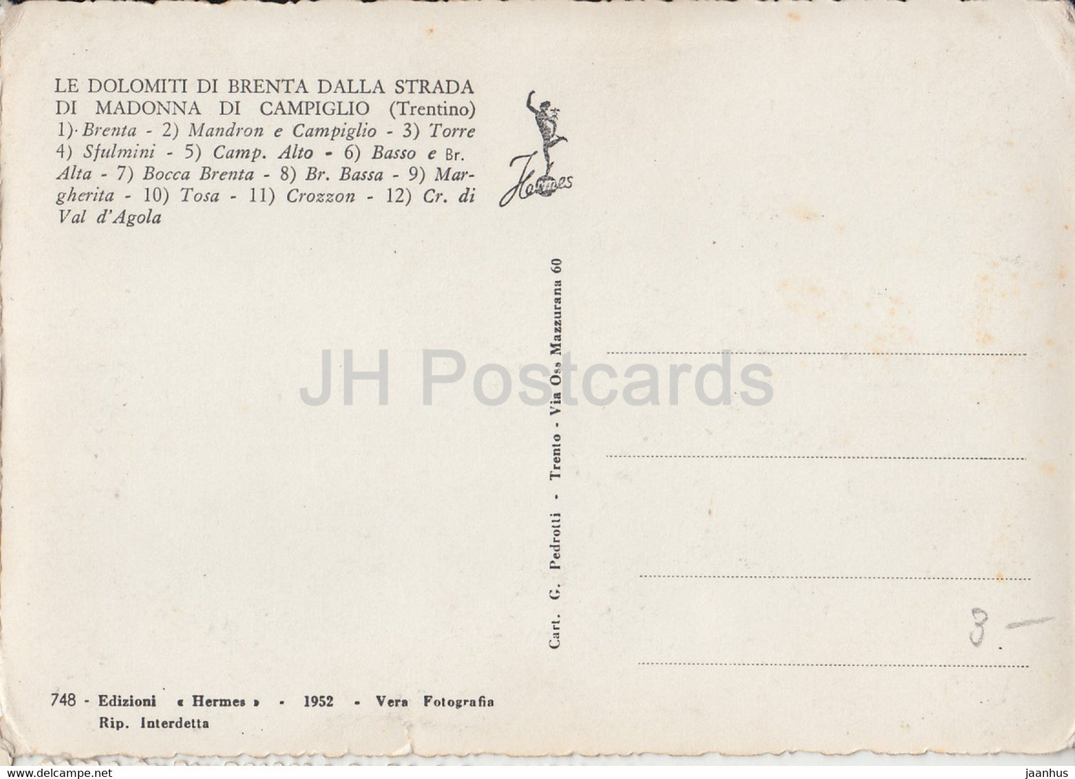 Le Dolomiti di Brenta dalla Strada di Madonna di Campiglio - old postcard - 1952 - Italy - unused