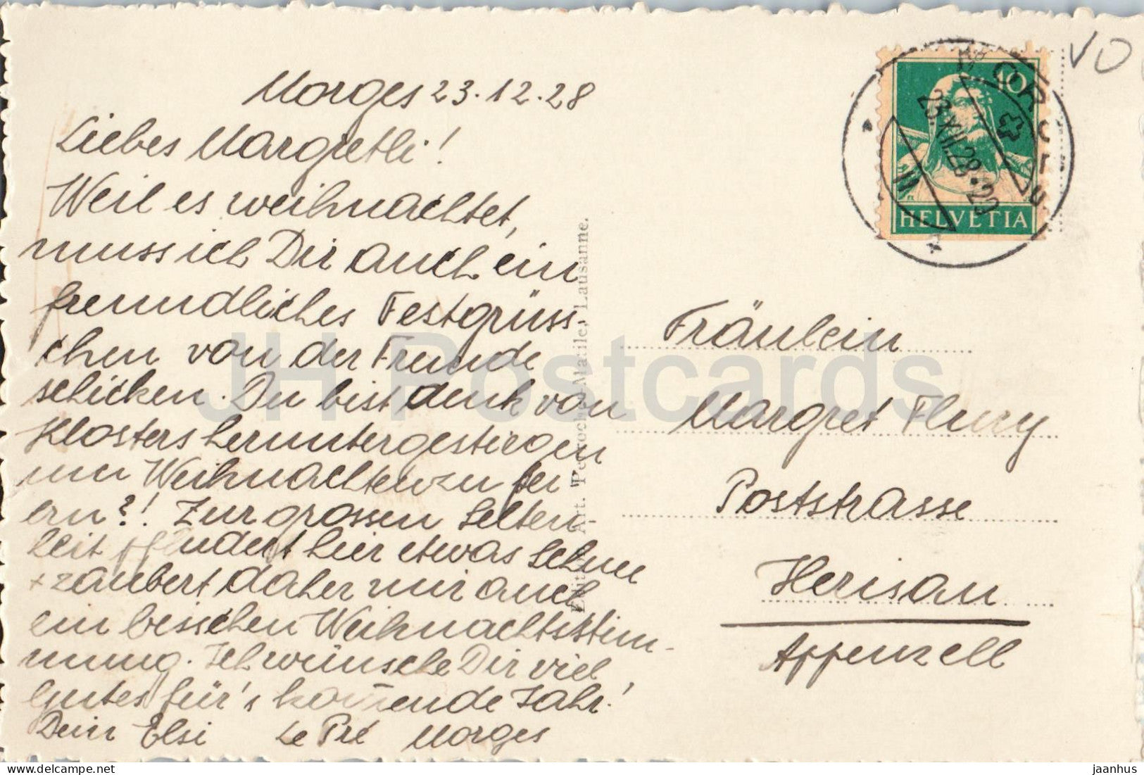 Le Revers - Val Ferret - Joyeux Noel - Christmas Greeting Card - village - old postcard - 1928 - Switzerland - used