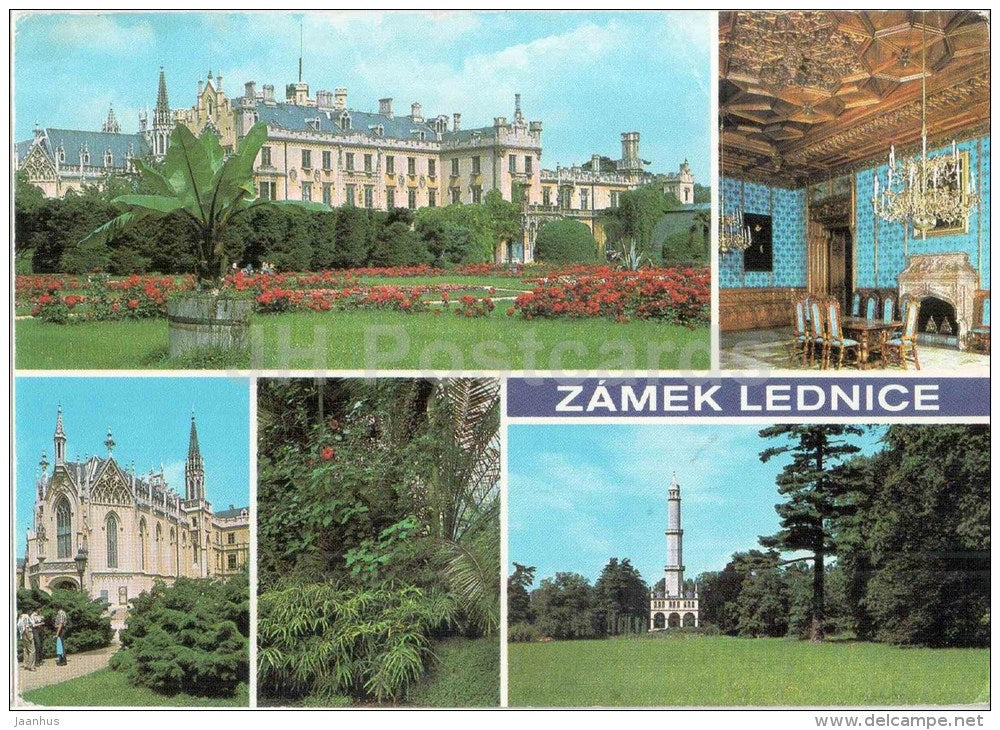 Lednice - castle - Jidelna - minaret - facade - Czechoslovakia - Czech - used 1981