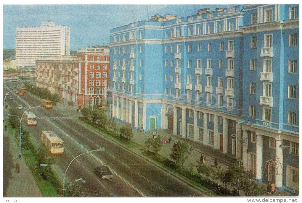 Lenin avenue - prospekt - trolleybus - Murmansk - 1986 - Russia USSR - unused