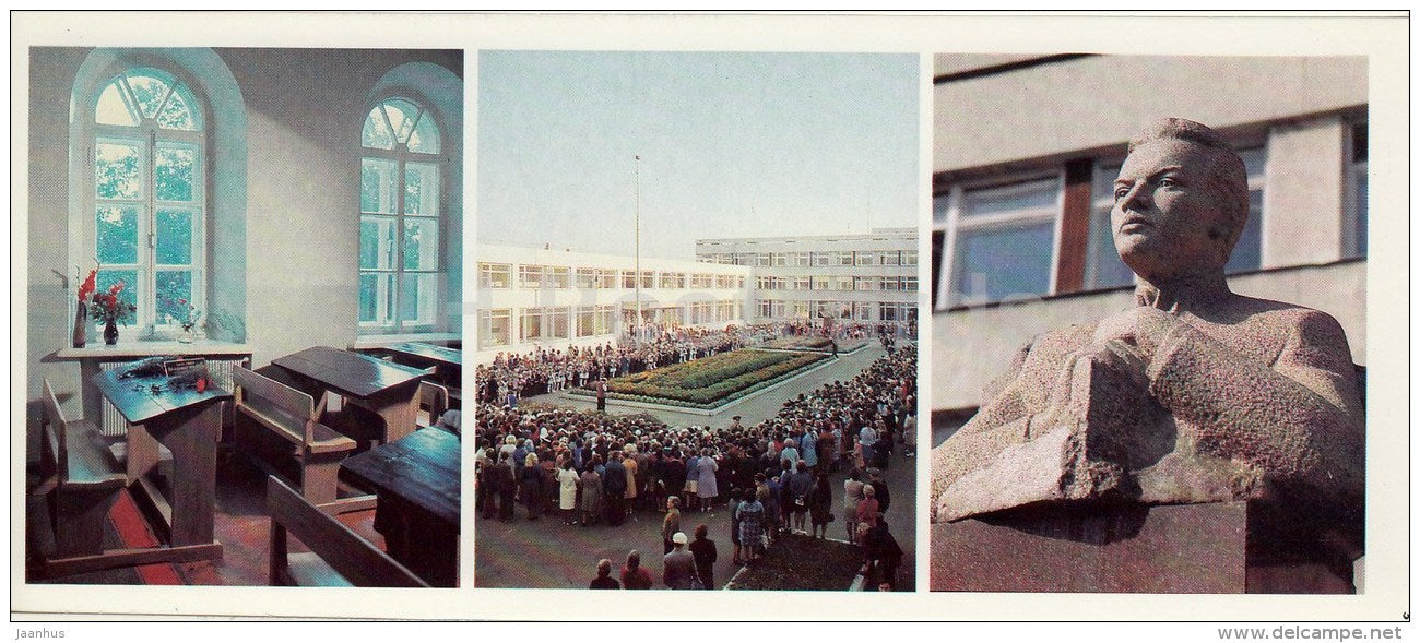 Lenin High School No. 1 - School Building - Ulyanov sculpture - Ulyanovsk - 1989 - Russia USSR - unused