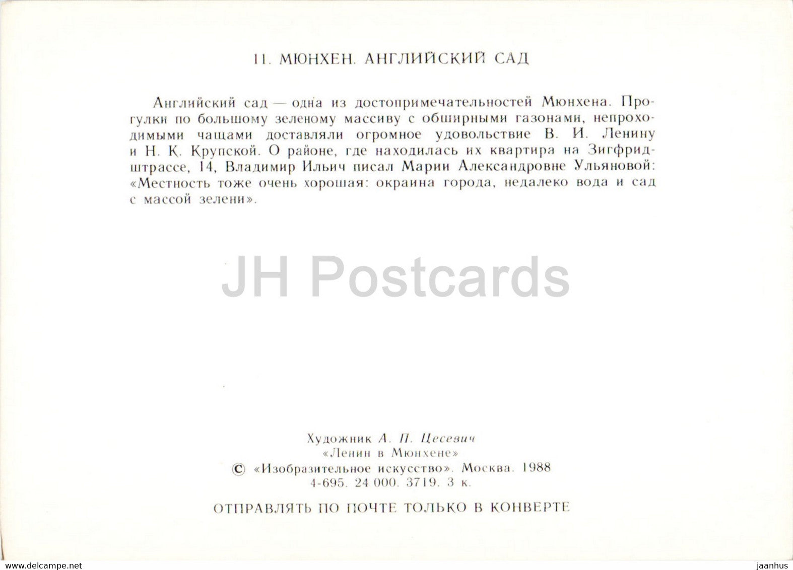 Lenin in Munchen - Munich - English Garden - illustration - 1988 - Germany - unused
