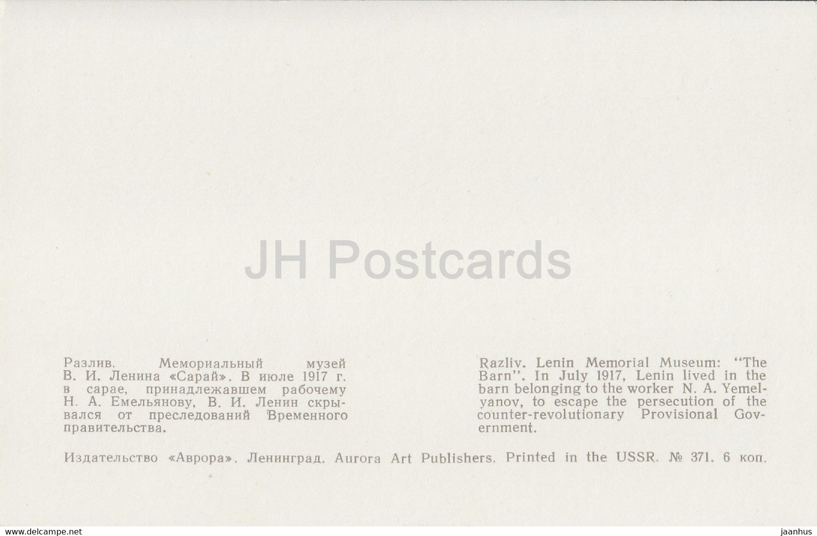 Lenin Memorial Places - Razliv - Lenin Memorial Museum - The Barn - 1971 - Russia USSR - unused