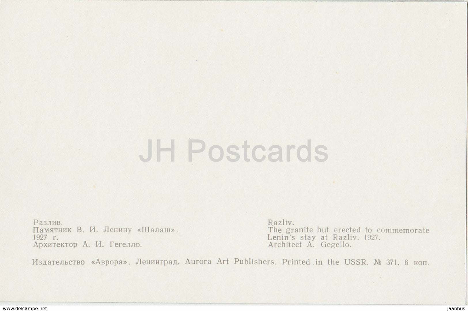 Lenin Memorial Places - Razliv - The Granite Hut erected to commemorate Lenin's Stay - 1971 - Russia USSR - unused