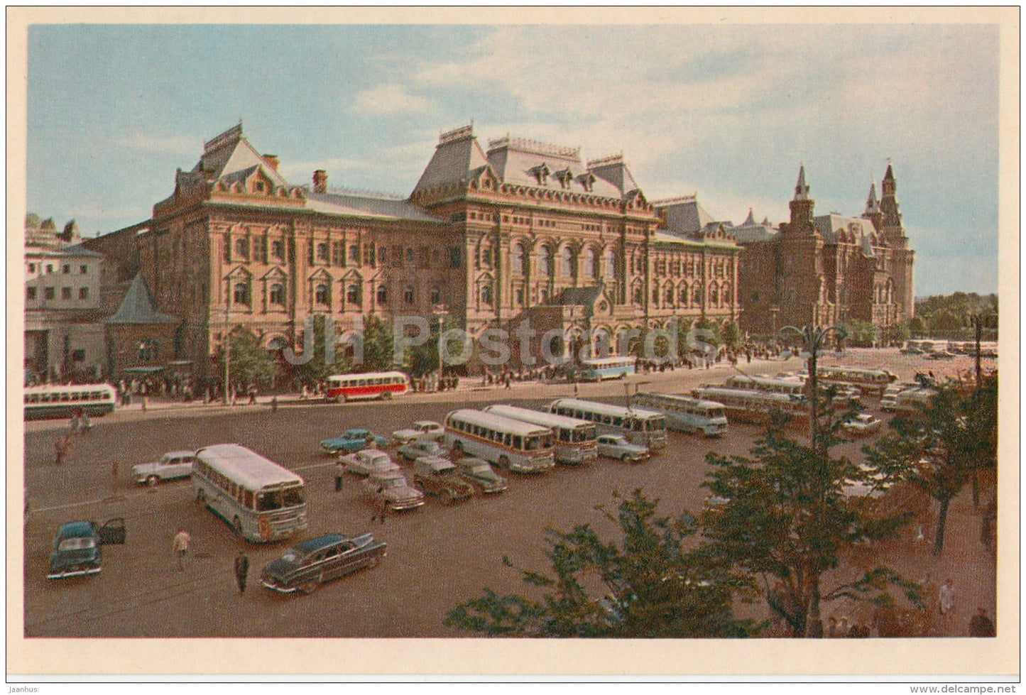 Lenin Museum - bus - cars - Moscow - old postcard - Russia USSR - unused