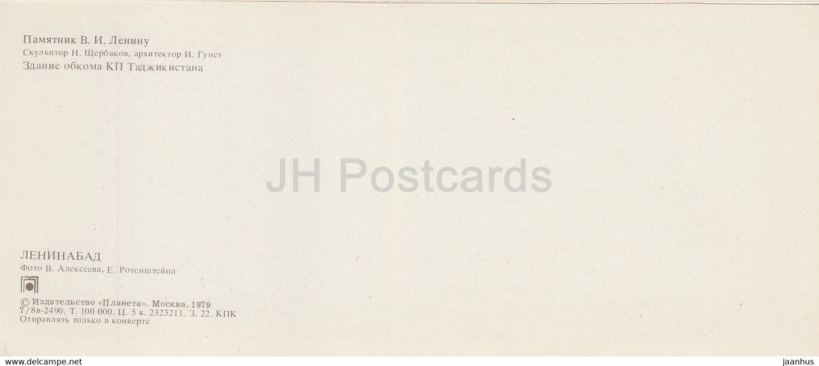 Leninabad - Khujand - monument to Lenin - Tajikistan regional committee building - 1979 - Tajikistan USSR - unused
