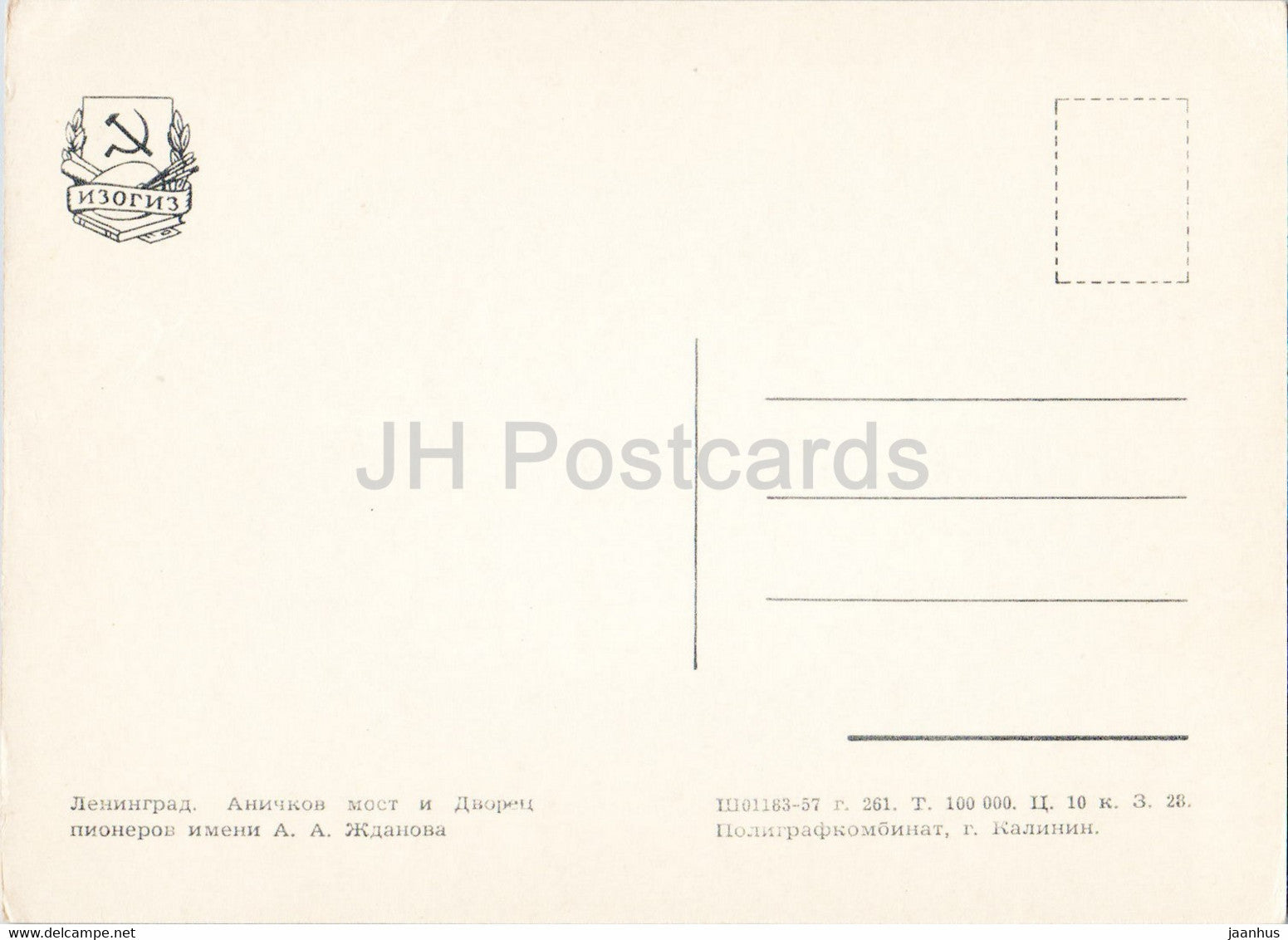 Leningrad - St Petersburg - Anichkov bridge - Palace of Pioneers - old postcard - 1957 - Russia USSR - unused