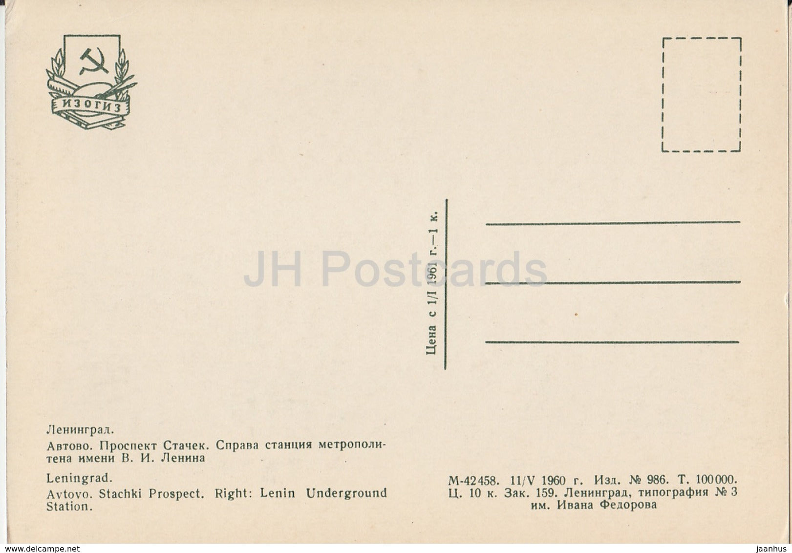 Leningrad - St. Petersburg - Avtovo - Stachki Prospect - Lenin Underground Station - 1960 - Russia USSR - unused