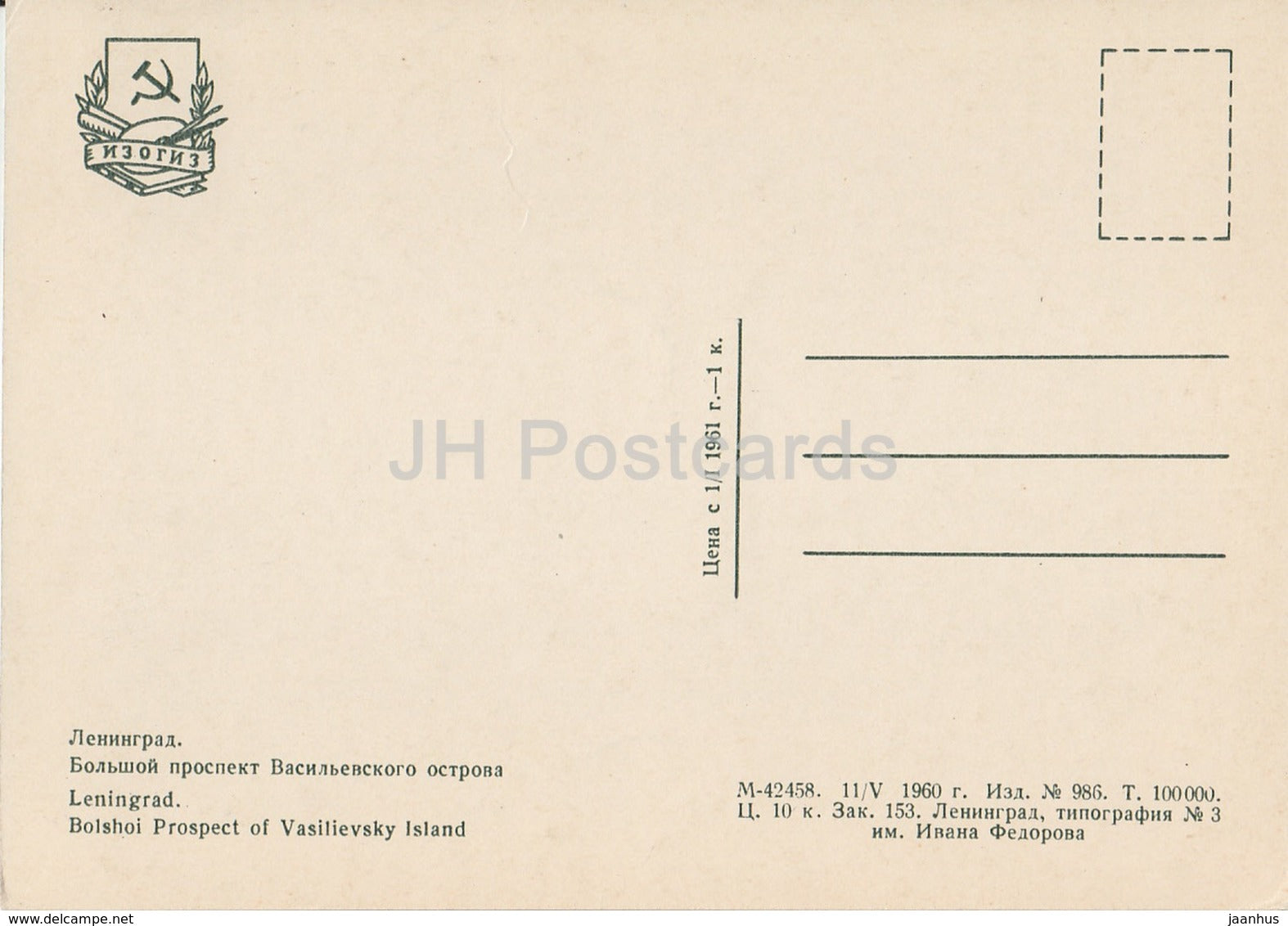 Leningrad - St. Petersburg - Bolshoi Prospect of Vasilievsky Island - motorcycle - 1960 - Russia USSR - unused