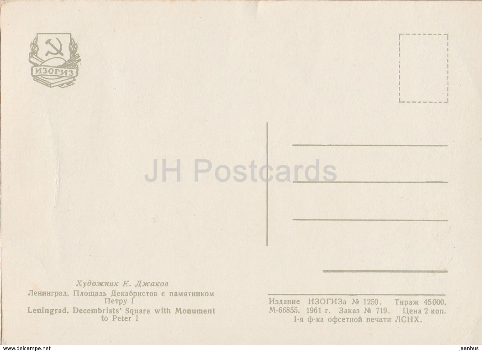 Leningrad - St. Petersburg - Decembrist's Square - illustration by K. Dzhakov - 1961 - Russia USSR - unused