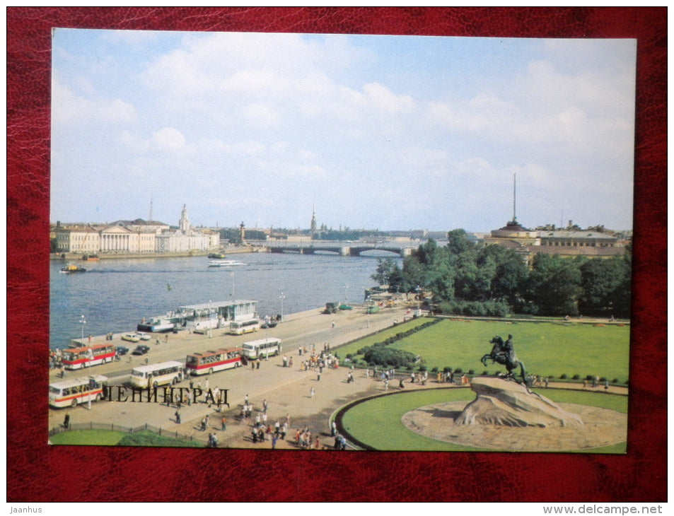 Leningrad - St- Petersburg - Decembrists square - The Bronze Horseman - buses - 1983 - Russia - USSR - unused