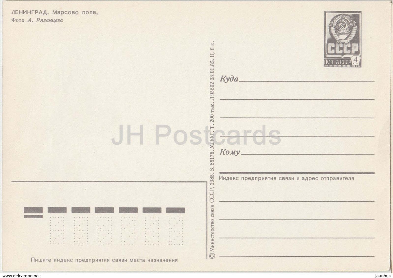 Leningrad - St Petersburg - Field of Mars - postal stationery - 1985 - Russia USSR - unused