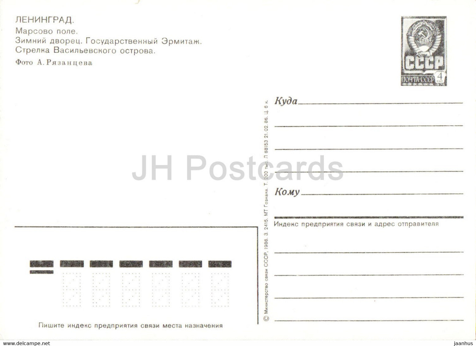 Leningrad - St Petersburg - Field of Mars - Winter Palace - Hermitage - postal stationery - 1986 Russia USSR - unused