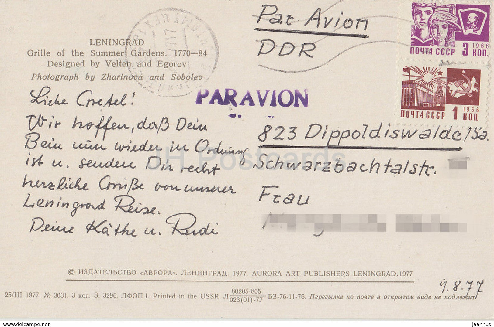 Leningrad - St Petersburg - Grille of the Summer Gardens - 1977 - Russia USSR - used
