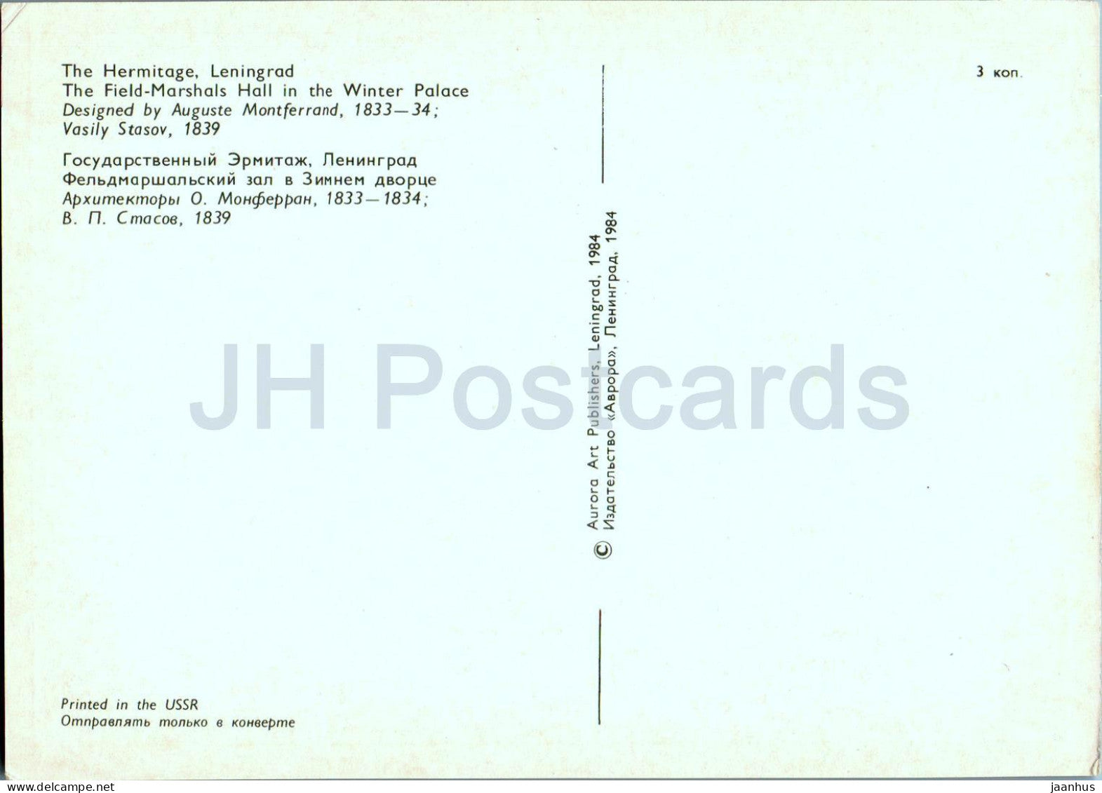 Leningrad - St Petersburg - Hermitage - The Field Marshals Hall in the Winter Palace - 1984 - Russia USSR - unused