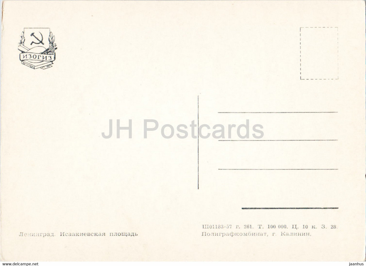 Leningrad - St Petersburg - Isaacs square - old postcard - 1957 - Russia USSR - unused