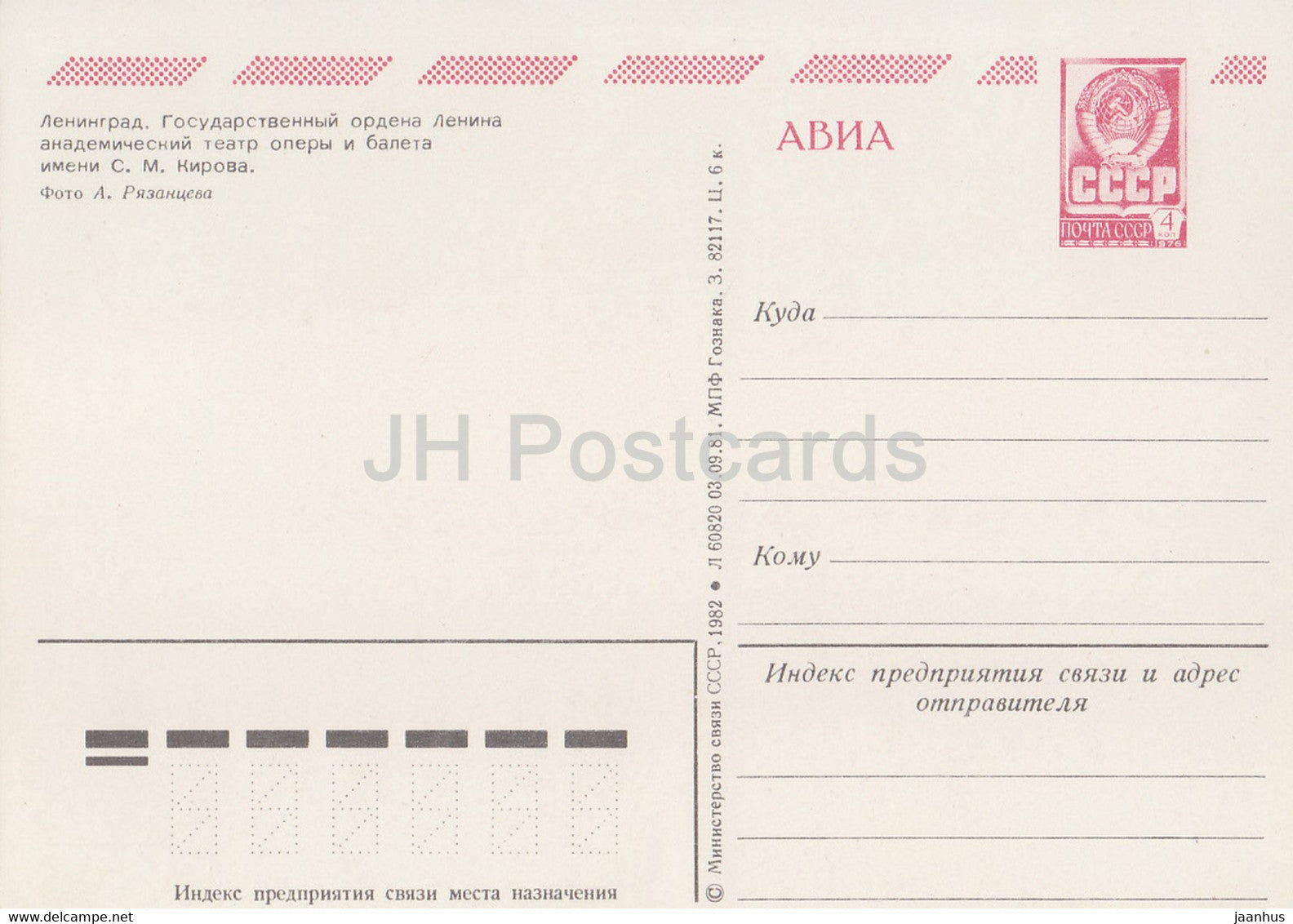 Leningrad - St Petersburg - Kirov Opera and Ballet Theatre - AVIA - postal stationery - 1982 - Russia USSR - unused