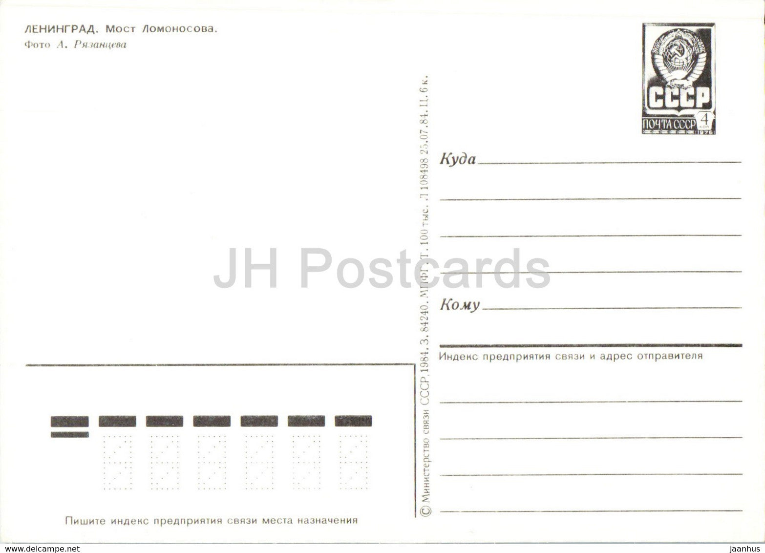 Leningrad - St Petersburg - Lomonosov Bridge - postal stationery - 1984 - Russia USSR - unused