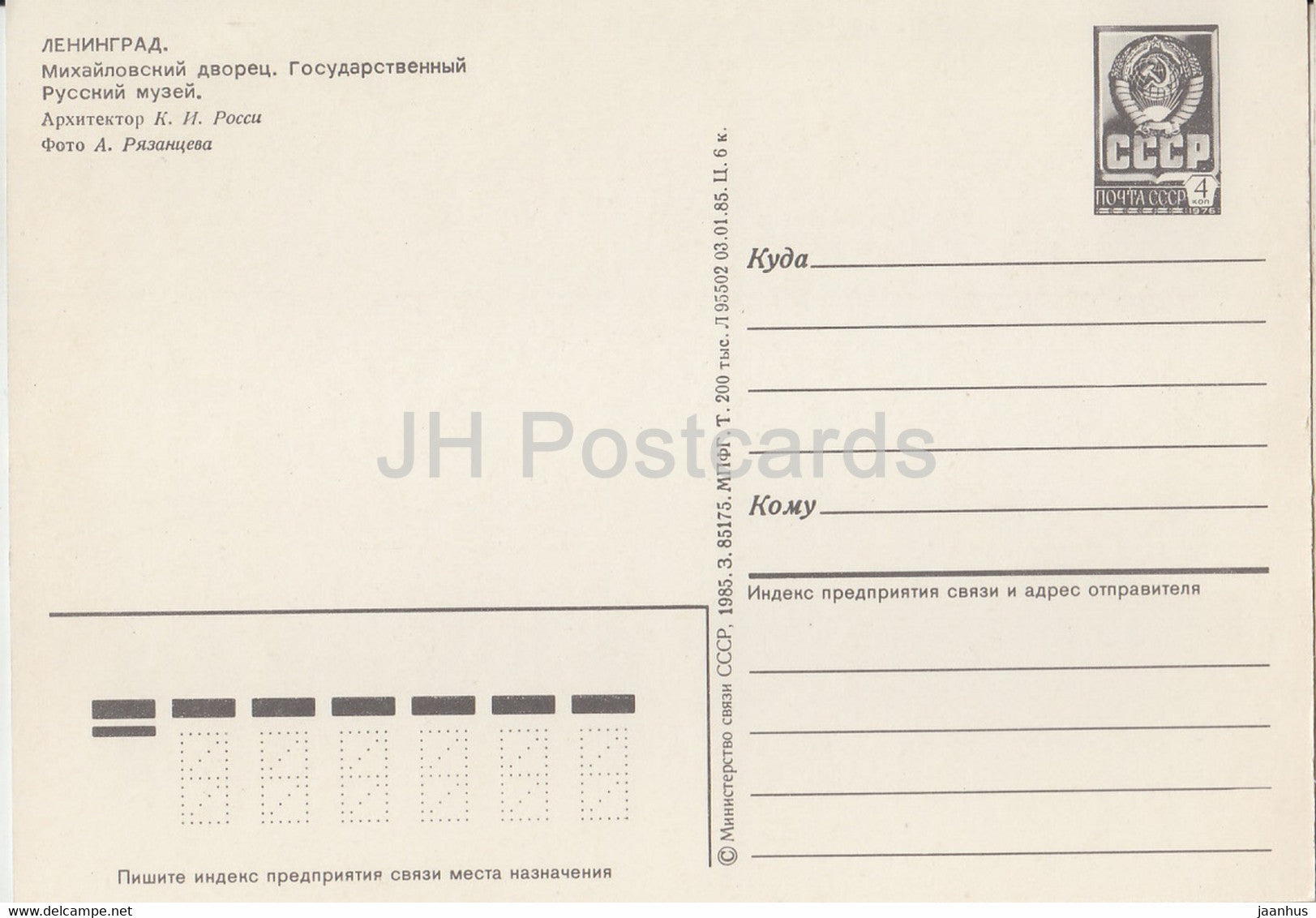 Leningrad - St Petersburg - Mikhailovsky Palace - Russian State Museum - postal stationery - 1985 - Russia USSR - unused